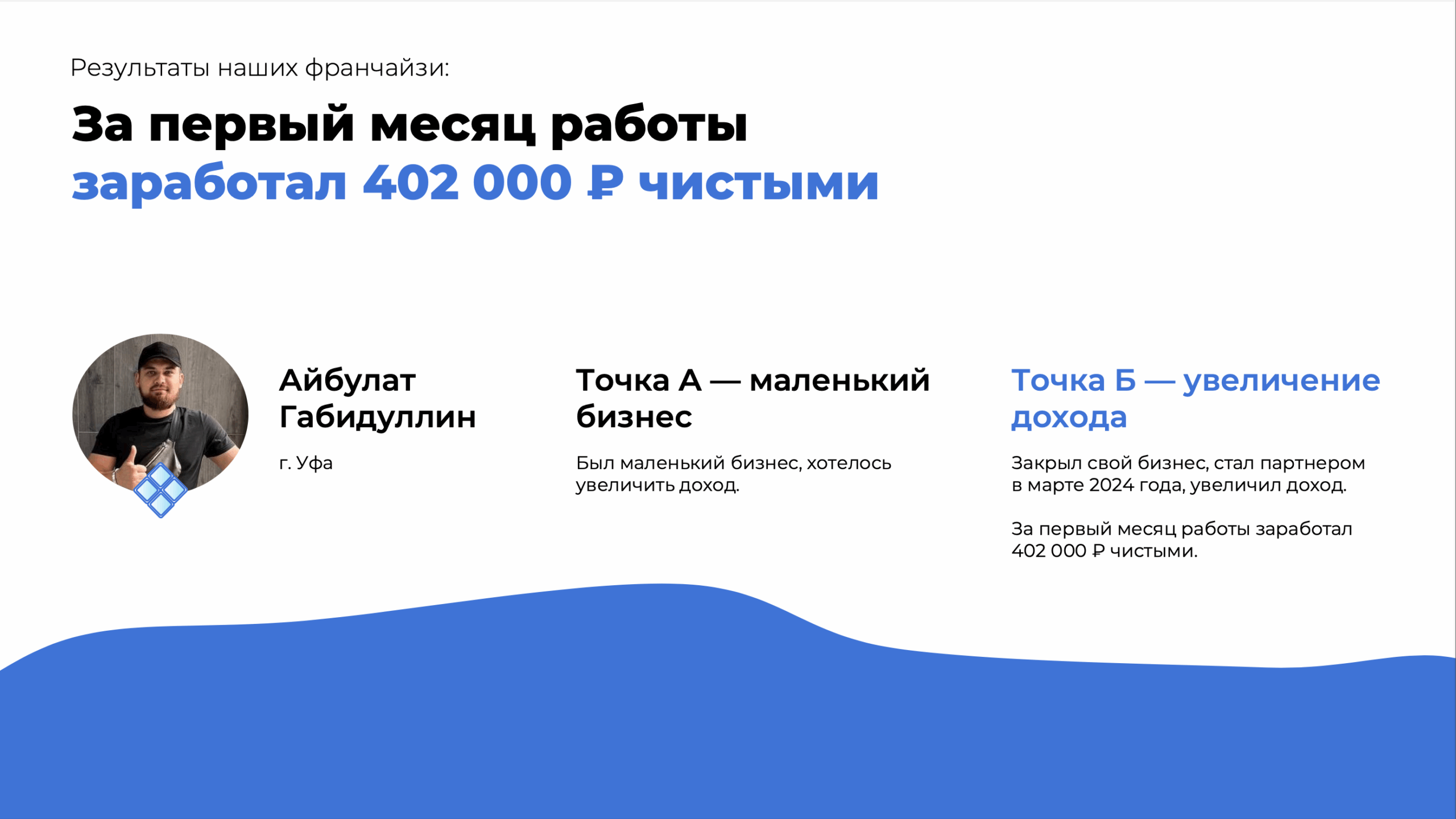 В апреле 2025 года я купил франшизу Adonis. До этого не имел опыта в бизнесе и ничего не знал о брендировании. Меня привлекла быстрая окупаемость и чёткая модель бизнеса. Во франшизе сразу есть все для старта, никаких доп затрат и заморочек — запуск бизнеса занял всего 15 дней. За первый месяц я заработал 100 тысяч чистыми. За 3 месяца более 1,6 млн оборота и 650 тыс. чистой прибыли. Сейчас вкладываю в новое оборудование, нанял несколько сотрудников. Это настоящая франшиза с заботой о франчайзи! Команды Adonis помогает мне на 150%.