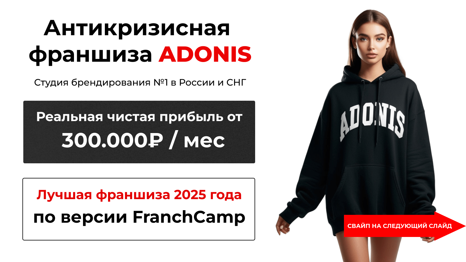 AdonisИстория успехаИван ЗыряновНовосибирскВ 3 месяц заработал 350 000 рублей чистой прибыли с франшизой Adonis-