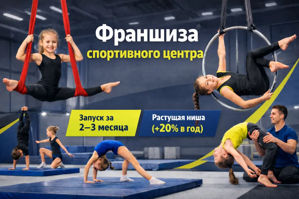 НЕБО СПОРТСтоимость590 000 ₽Инвестиции2 000 000 ₽Окупаемость12 мес.Доход350 000 ₽Франшиза Небо Спорт - это бренд, который сформировался на базе сети спортивно-игровых центров Небо, одной из крупнейших семейных интертеймент-площадок в Москве. Наш опыт в бизнесе и спорте более 10 лет. 10 000 тысяч детей и подростков уже занимаются по нашим программам. Открытие Небо Спорт - это возможность развивать гимнастику и акробатику в свободной и растущей нише (+20% в год) с надежным брендом и зарабатывать от 350 000 рублей в месяц.