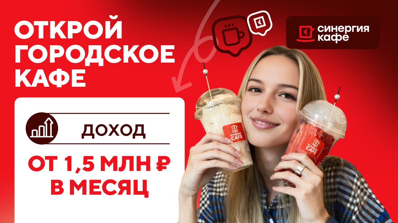 Синергия КафеСтоимость500 000 ₽Инвестиции1 500 000 ₽Окупаемость12 мес.Доход140 000 ₽В 2026 году спрос на демократичные форматы кафе вырос на 14%. «Синергия Кафе”— это сеть из 14 городских кафе с понятной экономикой. В сети 85% посетителей постоянные. 70% выручки дают напитки с высокой маржой, обеспечивая стабильный спрос круглый год.Прибыль от 140 000 ₽/мес при штате от 2 человек. Партнерам доступны: готовая бизнес-модель, интеграция в вузы, запуск под ключ и операционная поддержка. Это понятный бизнес с прогнозируемой выручкой.