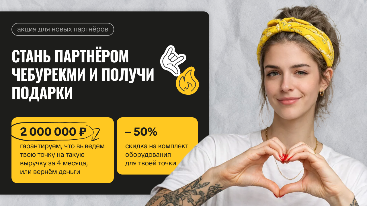 ЧебурекМиСтоимость500 000 ₽Инвестиции700 000 ₽Окупаемость6 мес.Доход700 000 ₽370+ точек ЧебурекМи в 6 странах — стрит-фуд франшиза, где 40% партнёров масштабируются и открывают 2–14 точек. Ежемесячный доход достигает 700 000 рублей в месяц даже с 1 точки. Бизнес-модель работает в городах от 2 500 человек — заходит там, где другие франшизы не окупаются. Формат с постоянным спросом: быстрый чек, понятный продукт, регулярные покупки. Успейте зайти в растущий рынок с уникальным продуктом! Оставляй заявку👇