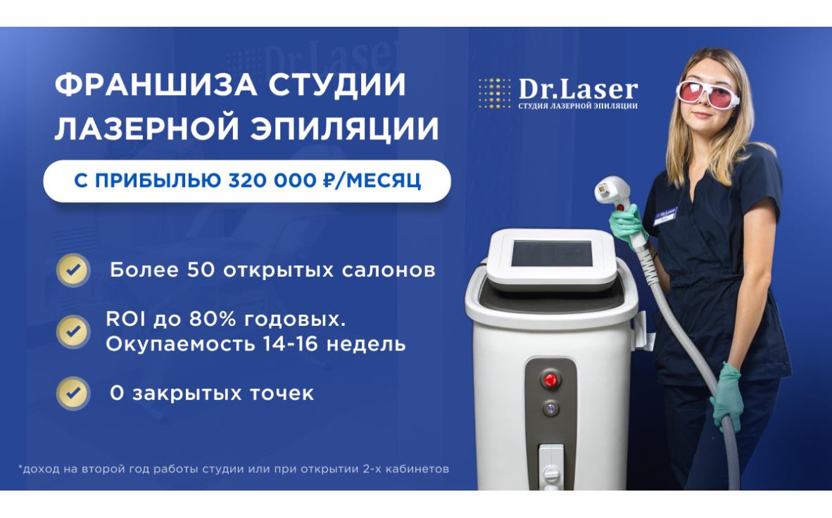 Dr.LaserСтоимость800 000 ₽Инвестиции1 900 000 ₽Окупаемость18 мес.Доход320 000 ₽Сеть Dr.Laser основана в 2019 году и насчитывает более 60 полноформатных студий. Ежегодно компания демонстрирует высокие бизнес показатели по сети со среднемесячной выручкой в 796 тыс. руб. Компания работает с мед лицензией и на оборудовании, имеющем регистрационное удостоверение. Ведется активный запуск новейших косметологических услуг, с помощью которых партнёр-франчайзи имеет дополнительную возможность заработка и потенциал в развитии.