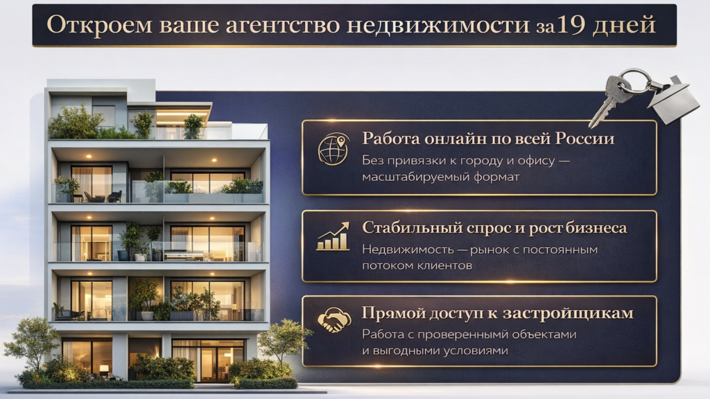 HOMENESTСтоимость360 000 ₽Инвестиции175 000 ₽Окупаемость2 мес.Доход580 000 ₽HOMENEST — это франшиза онлайн-агентства недвижимости с полным циклом услуг. Станьте частью сети и начните зарабатывать на юридическом сопровождении, оценке и сделках по всей России. Преимущества для партнера: Полный цикл услуг в одной модели Обучение и юридическая поддержка Высокий доход с каждой сделки Получите готовый бизнес: обучение, маркетинг и доступ к базе объектов. Начните прибыльный бизнес в сфере недвижимости с нашей поддержкой.