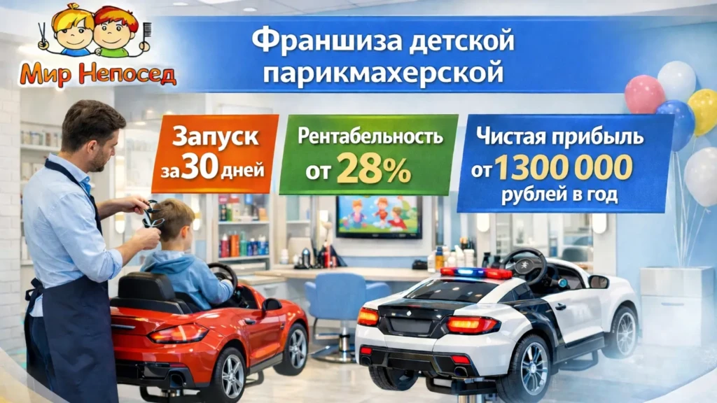 Мир НепоседСтоимость350 000 ₽Инвестиции1 341 000 ₽Окупаемость15 мес.Доход110 000 ₽Франшиза детской парикмахерской — это проверенная модель с 10-летним опытом. Яркий интерьер, игровые зоны и маленькие подарки создают атмосферу праздника. Средний чек - 1000 руб., рентабельность бизнеса от 28%. Вы получите готовую концепцию, опытных наставников, поддержку на каждом этапе и сможете зарабатывать от 1 300 000 руб. чистой прибыли в год, развивая узнаваемый бренд в растущей нише.