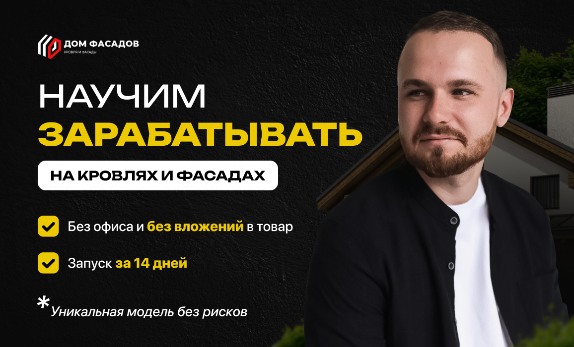 Дом фасадовСтоимость630 000 ₽Инвестиции50 000 ₽Окупаемость3 мес.Доход450 000 ₽Франшиза сети «Дом фасадов» — кровли и фасады «под ключ». Компания на рынке с 2016 года. По франшизе с 2021 года открыто >85 филиалов по РФ. Быстрый рост, высокое доверие партнёров. Условия, которые привлекают наших партнёров: опыт работы в строительстве не важен, открываемся без офиса и вложений в материалы, обучаем с «0»