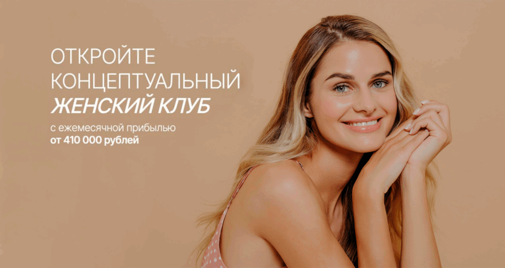WOMAN`S WAYСтоимость490 000 ₽Инвестиции1 000 000 ₽Окупаемость6 мес.Доход410 000 ₽WOMAN’S WAY — женский клуб нового формата, где женщины раскрывают себя, находят поддержку и вдохновение. Это не просто фитнес, а пространство для развития тела, разума и души: трендовые занятия, мастер‑классы, арт‑терапия, групповые сессии с психологом и практики для женщин. Франшиза включает готовую бизнес‑модель, обучение, маркетинг и сопровождение. Чистая прибыль от 410 000 руб. в месяц, окупаемость 5–6 месяцев. Создайте сообщество и стабильный доход уже сегодня!