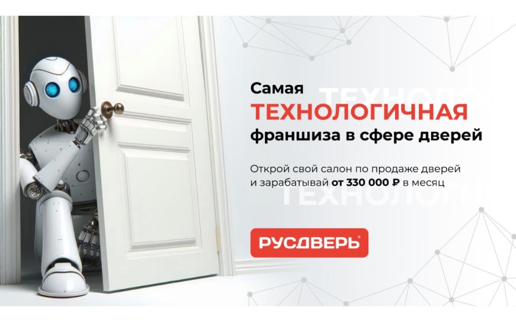 РУСДВЕРЬСтоимость710 000 ₽Инвестиции650 000 ₽Окупаемость4 мес.Доход330 000 ₽Франшиза магазинов дверей с 20-летним опытом. Открыв магазин по нашей франшизе, вы будете зарабатывать от 330 000 рублей в месяц, продавая двери для домов и офисов. Сеть с 200+ точек предлагает обучение, поставки и маркетинг. Преимущество — в стабильном спросе и отлаженной модели. Откройте магазин, где качество обслуживания клиентов будет на высшем уровне, и стройте свой бизнес в надёжной нише, получая поддержку от нашей компании.
