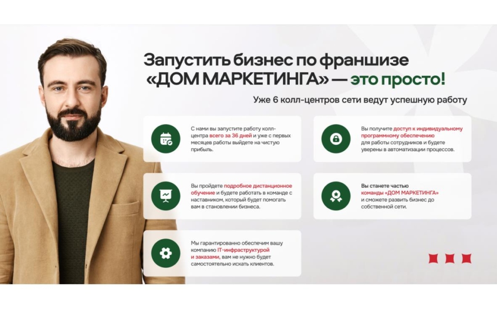 КёлтисонСтоимость360 000 ₽Инвестиции496 500 ₽Окупаемость9 мес.Доход100 000 ₽Откройте сервисный центр по ремонту и настройке электроники за 42 дня. С нашей франшизой вы получаете готовую модель: ремонт и настройка электроники по доступным ценам, скорость, качество и честность — не завышаем стоимость, исправляем ошибки и выдаём временные телефоны на время ремонта. Наши услуги выбирают потому, что покупка новой техники стала дороже, и россияне всё чаще ремонтируют гаджеты. Рынок ремонта техники в России растёт +10 % в год.