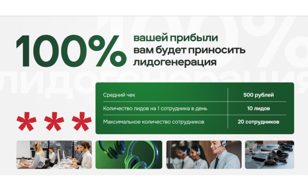 Prostudio ExpertsСтоимость390 000 ₽Инвестиции390 000 ₽Окупаемость3 мес.Доход300 000 ₽Prostudio Experts – агентство интернет-маркетинга с прибылью от 3 600 000 в год и минимальными вложениями. Запустите бизнес за 23 дня и зарабатывайте в любой нише: создавайте и продвигайте сайты, оптимизируйте карточки товаров на маркетплейсах, генерируйте лиды. Мы поможем вам с выбором локации, обучим специалистов, настроим лидогенерацию, обеспечим тендерными заказами и предоставим колл-центр для обработки заявок.