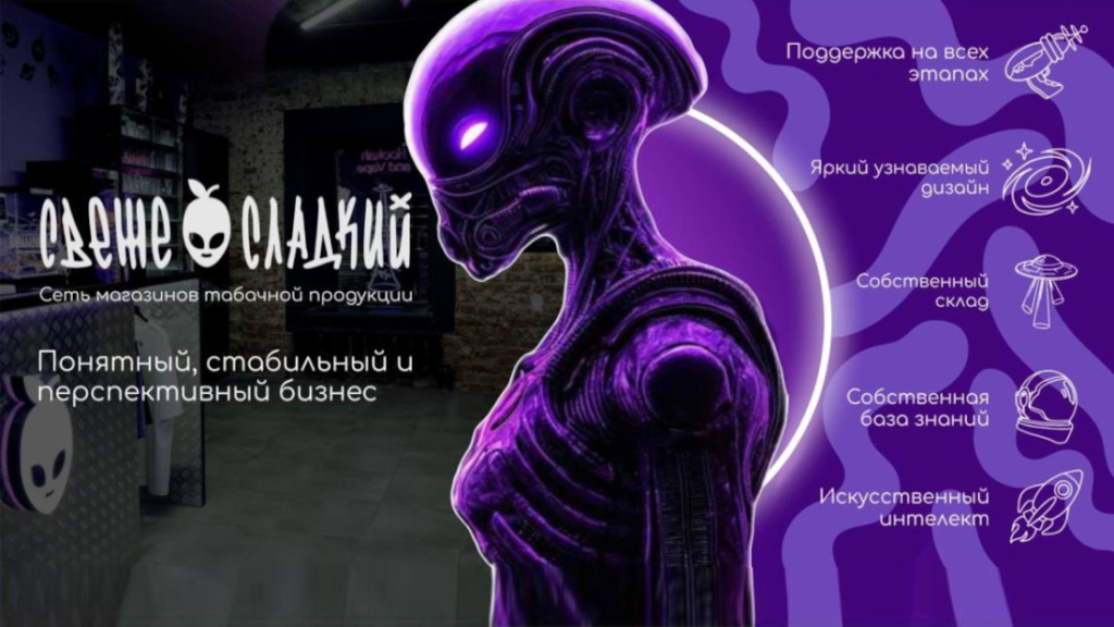 Свеже СладкийСтоимость290 000 ₽Инвестиции1 000 000 ₽Окупаемость10 мес.Доход320 000 ₽С 2021 года в Казани успешно развивается сеть стильных табачных магазинов. За 4 года создана технологичная и законная бизнес-модель, приносящая от 320 000 рублей ежемесячно. Полное обучение и поддержка помогают избежать ошибок и быстро выйти на прибыль. К 2027 году популярность табачных изделий вырастет на 8% благодаря инновационным продуктам. Эта ниша позволяет построить стабильный бизнес с высоким доходом. Хотите узнать, как открыть свой магазин? Запрашивайте презентацию!