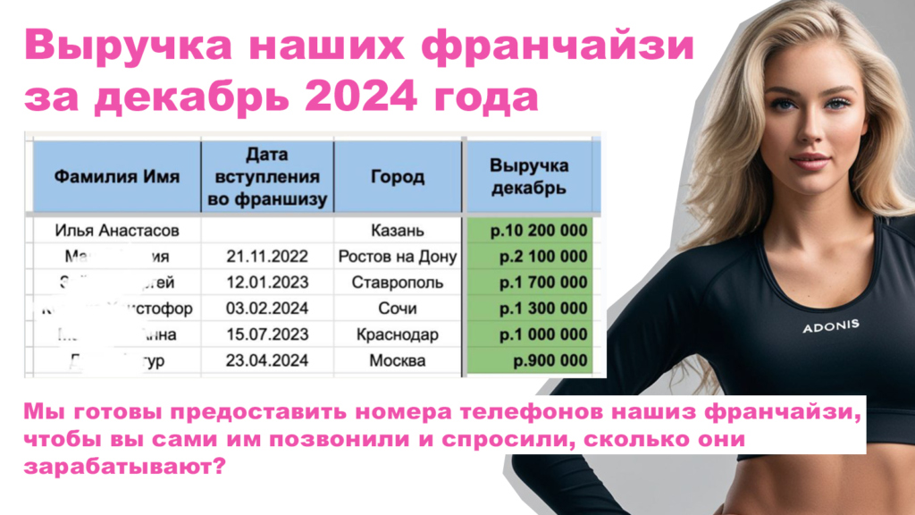 Иван ЗыряновНовосибирскВ 3 месяц заработал 350 000 рублей чистой прибыли с франшизой Adonis-