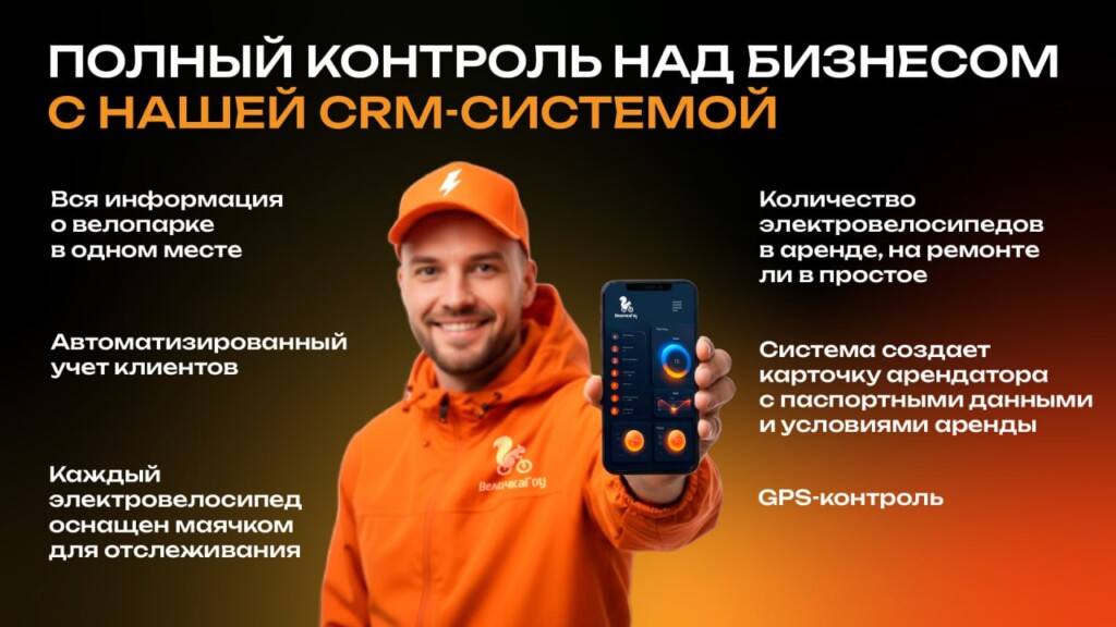 Я Алик, владелец проката электровелосипедов «Велочка». У нас 100 электровелосипедов и сервис по ремонту. Ранее я продавал обычные велосипеды, но заметил рост интереса к электровелосипедам, особенно у курьеров. Мы предоставляем аренду электровелосипедов и аксессуаров, а также услуги по ремонту и обслуживанию. Скоро открою второй филиал. В современном мире все хотят быструю доставку, и мы готовы это предоставить!