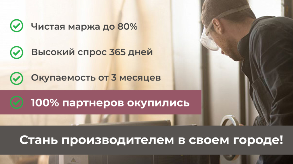 KIGERСтоимость500 000 ₽Инвестиции100 000 ₽Окупаемость2 мес.Доход700 000 ₽Запустив бизнес, вы будете зарабатывать до 700 000 рублей ежемесячно с маржой до 40%, устанавливая натяжные потолки. Гарантия прибыли прописана в договоре, а полное обучение и поддержка обеспечивают старт даже новичкам. В условиях роста строительного рынка наша специализированная ниша характеризуется высоким спросом и низкой конкуренцией, что создает благоприятные условия для вашего профессионального развития и финансового успеха