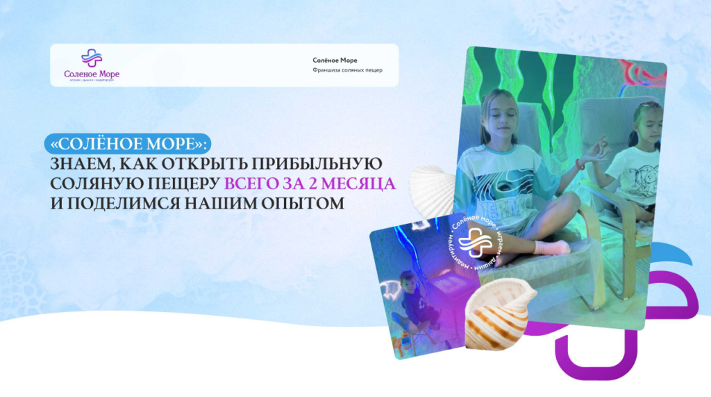 Соленое МореСтоимость250 000 ₽Инвестиции1 230 000 ₽Окупаемость13 мес.Доход150 000 ₽«Соленое море» — ваш личный санаторий прямо в городе. Соляная пещера, где 1 час сеанса по эффекту напоминает 2 дня отдыха у моря. Исследования показывают, что галотерапия улучшает дыхание, снижает воспаление и укрепляет иммунитет. Мы создали безопасное и полезное пространство для всей семьи: от 1 года до 70+, где гости получают расслабление, поддержку иммунитета и улучшение сна. С нашей франшизой вы сможете открыть готовый бизнес с поддержкой: стандарты, обучение персонала, маркетинг.
